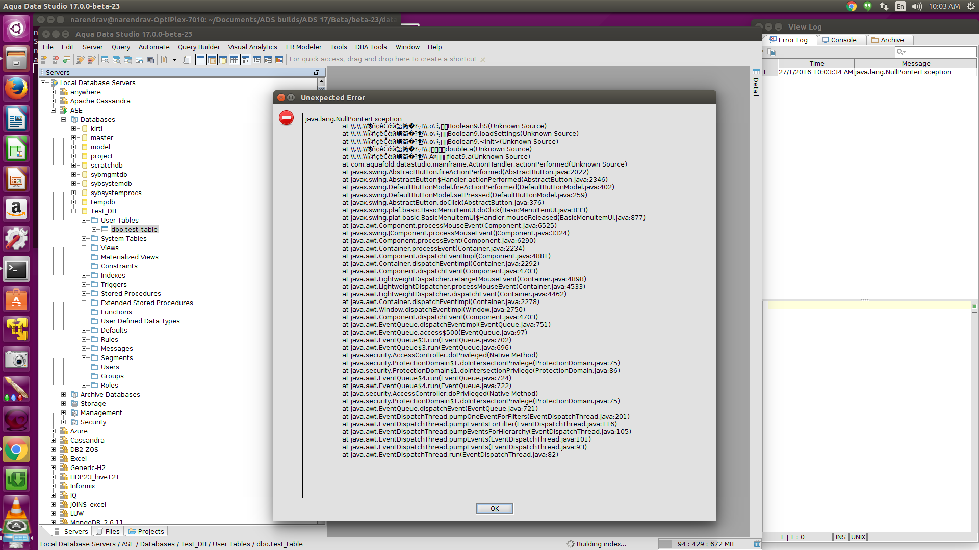 3.If we cross check this issue in previous builds it gives different stack trace. See attached screenshots.