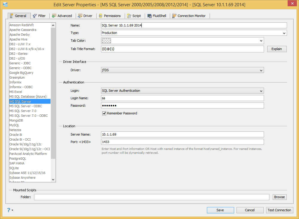 @dev: using jTDS, we set the defautl ssl=request. Using Microsoft driver, test to see what is the default & what is the equivalent to ssl=request.[TC] It doesn't appear that the Microsoft driver has an equivalent. Either ssl is on or off. See https://msdn.microsoft.com/en-us/library/bb879949(v=sql.110).aspx