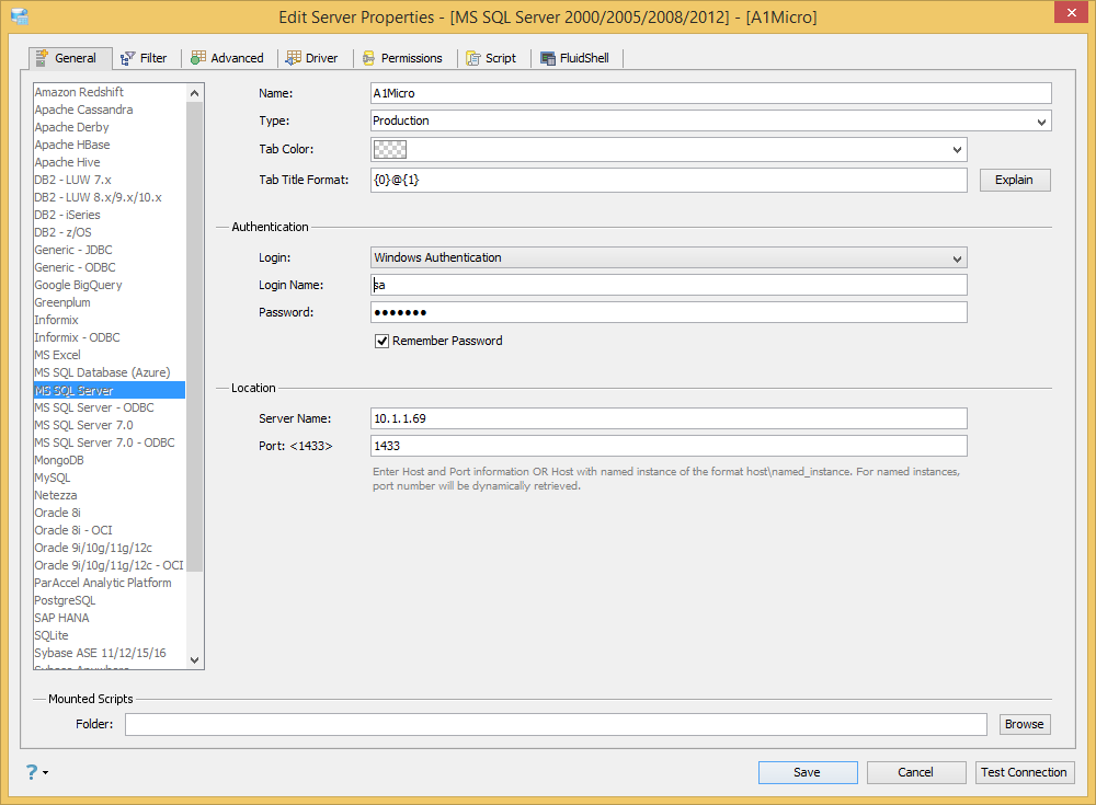 Do not worry about testing with SSO. This will be done in a subsequent issue. Just test using the SQL Server Authentication. See Server Properties.