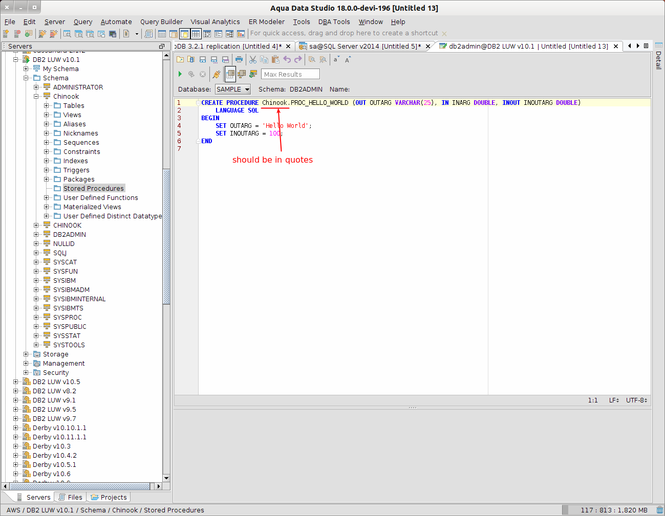 In ProcPanel.getDefaultText, DB2 is the only database that we don't enclose the schema name in double quotes. Shouldn't it be in double quotes for DB2 as well?