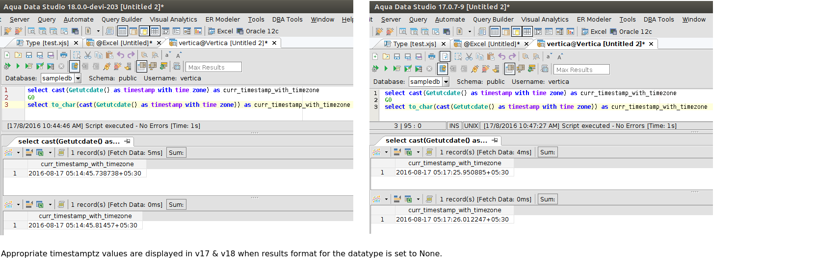 - Vertica: TIMESTAMPTZ returns incorrect values.