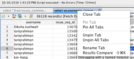 In our current grid results, if you right click on any tab besides the first tab, ADS shows the "Close Tab" option, as shown in OtherTabs screenshot