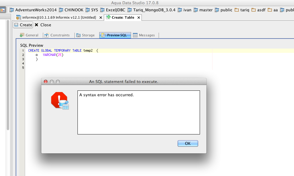 3. Broken between an informix checkin between Aug 14 2015 and Aug 11 2015
