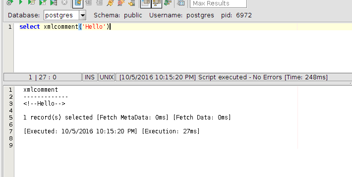 select xmlcomment('Hello')