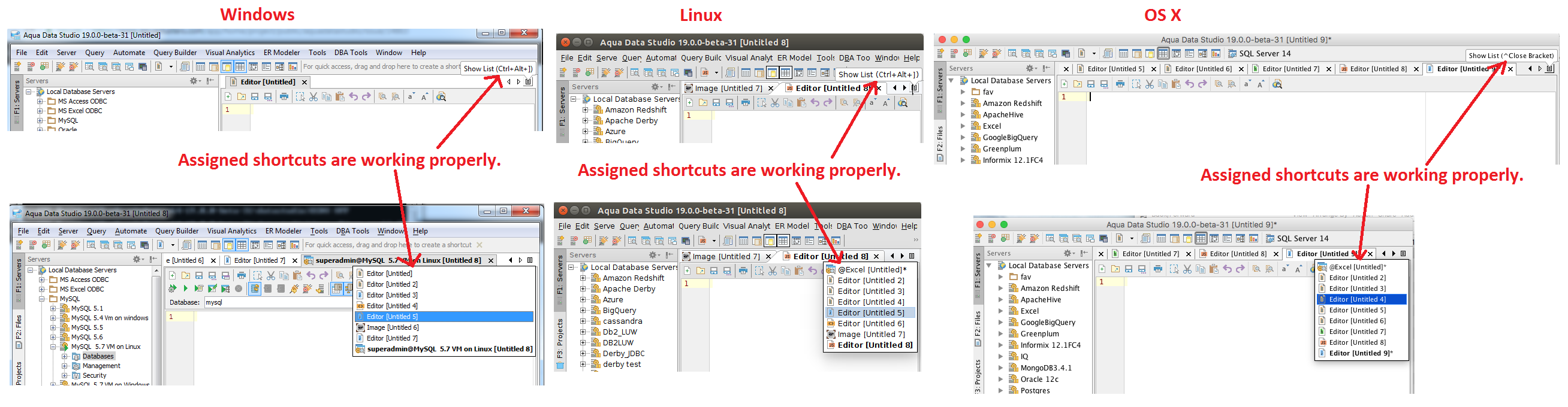 Verified:- Keystroke Ctrl+Alt+]  is working on Linux and Windows. Keystroke Control+]  is working on OS X.