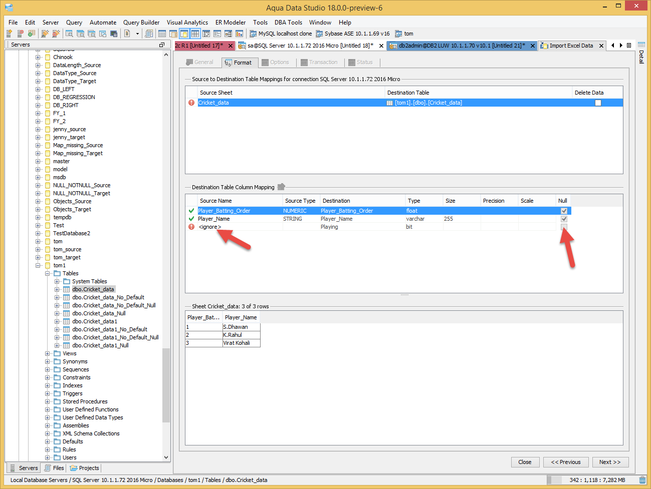 In the Destination Table Column Mapping block, I can choose to select no import-source column to map to the non-nullable column, but ADS by default attempts to assign (null) to the import, which fails as the column is non-nullable.