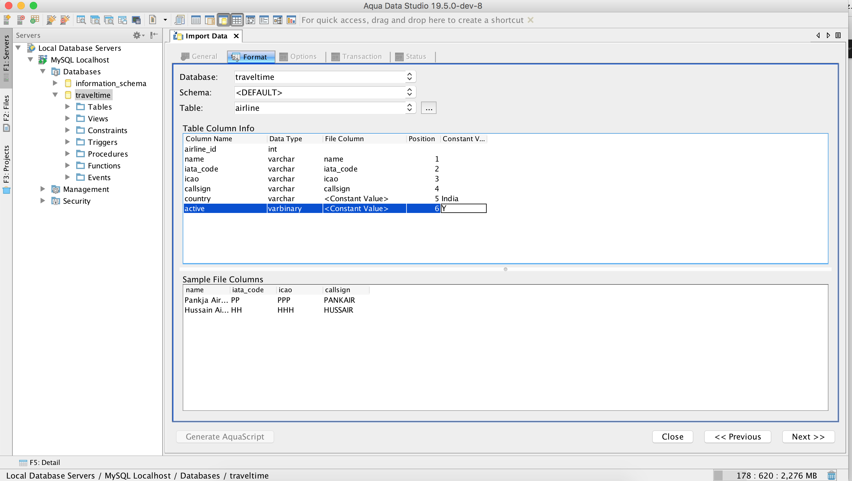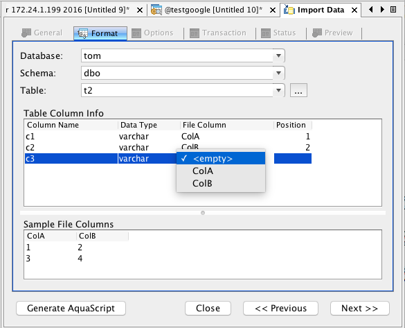 Actual: 1. Destination table column mapping field is empty. see here 2. Once I click Next button in the format tab, it display pop up see here