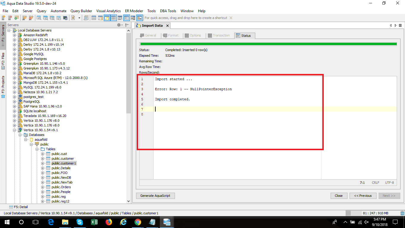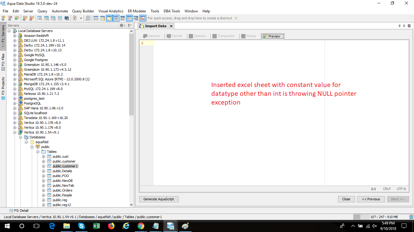Issue Observed while importing .csv file in the table for Vertica: