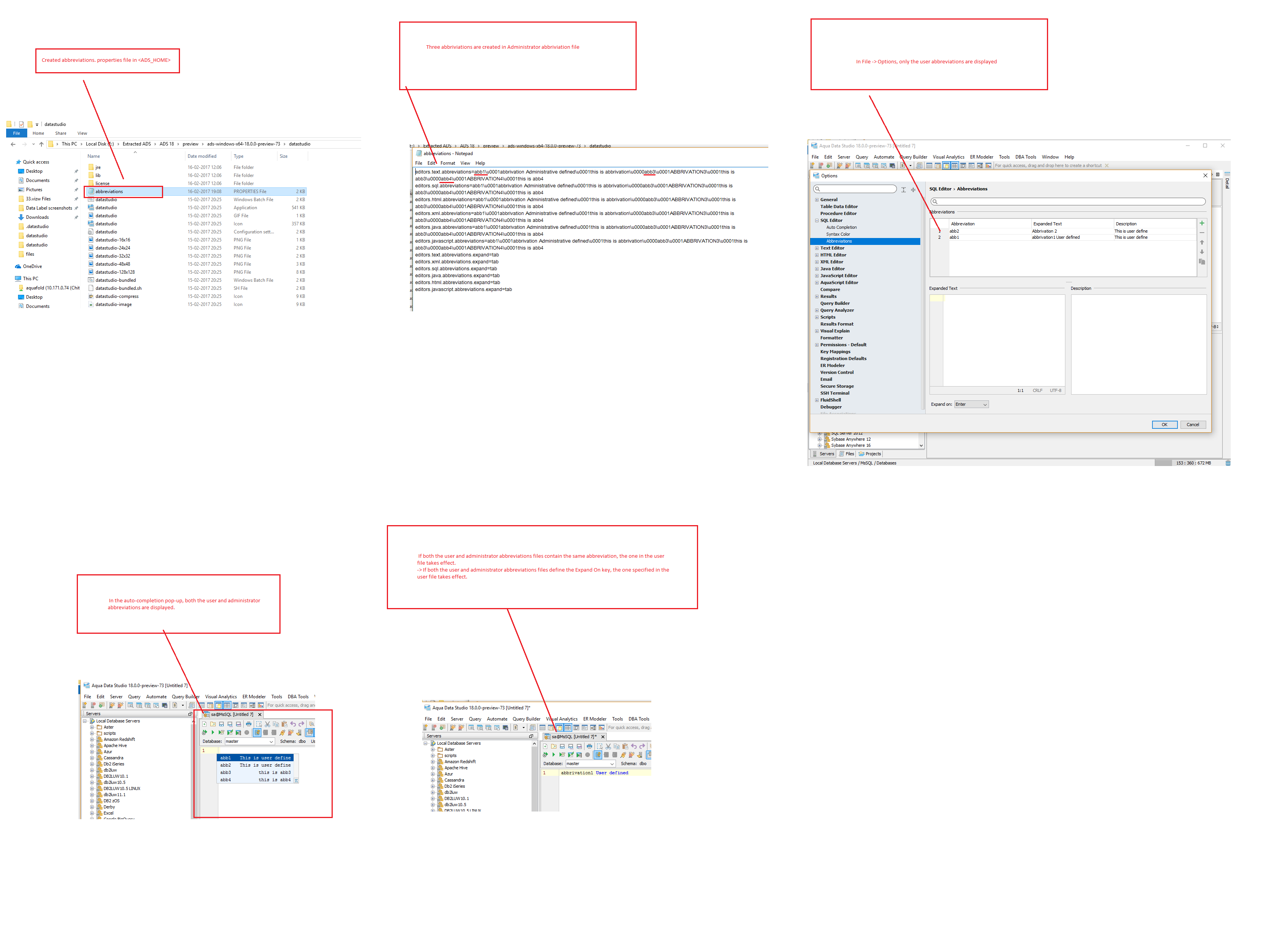 - For auto-completion, verify all editors that expand abbreviations and if the auto-completion pop-up is supported, verify that both user and administrator abbreviations are displayed in the auto-completion pop-up.