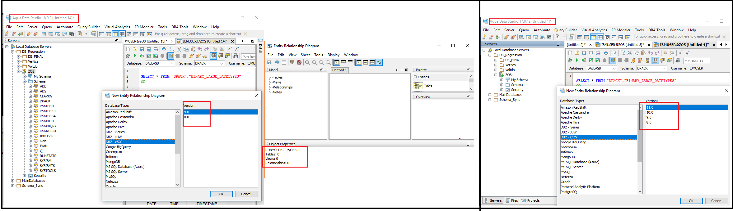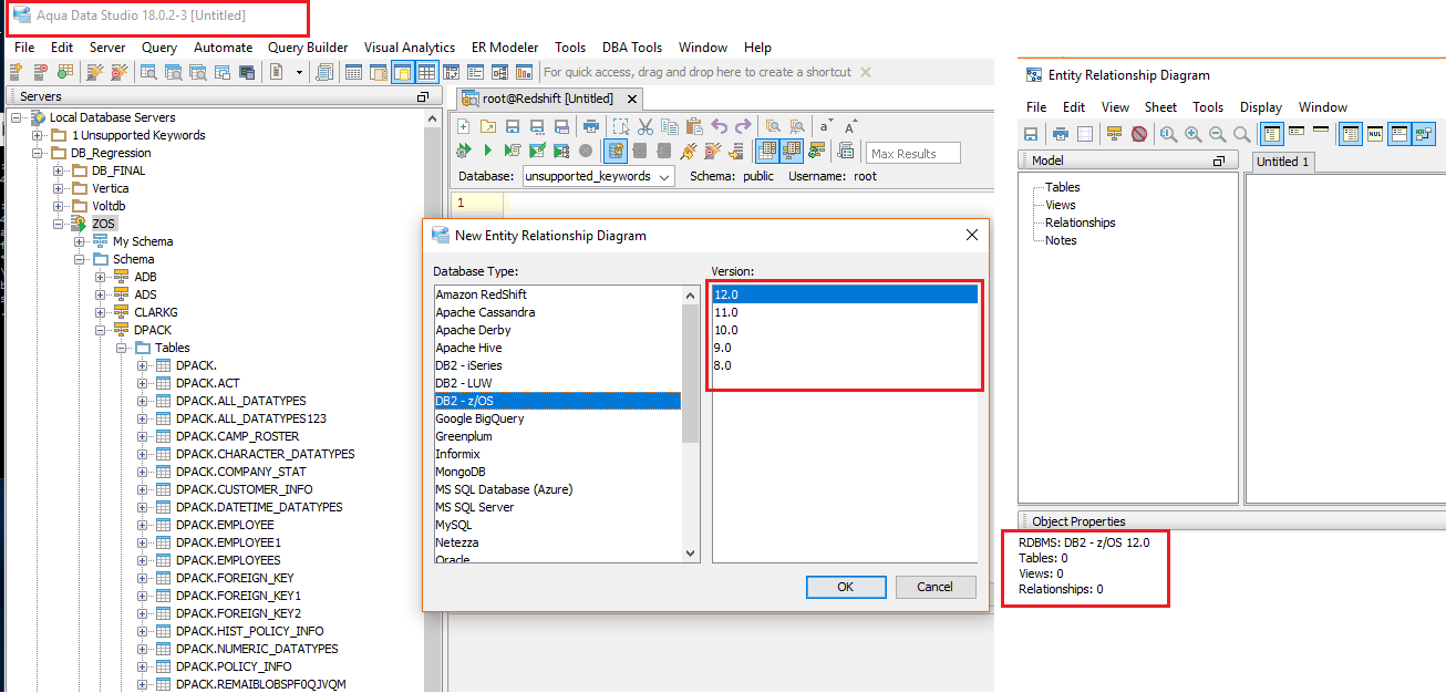 DB2 z/OS 10.0, 11.0 & 12.0 have been added to the version list for the ERM. Also added version 12 to connectionproperties class, though we are currently not using version 11 or 12 for any specific logical work.