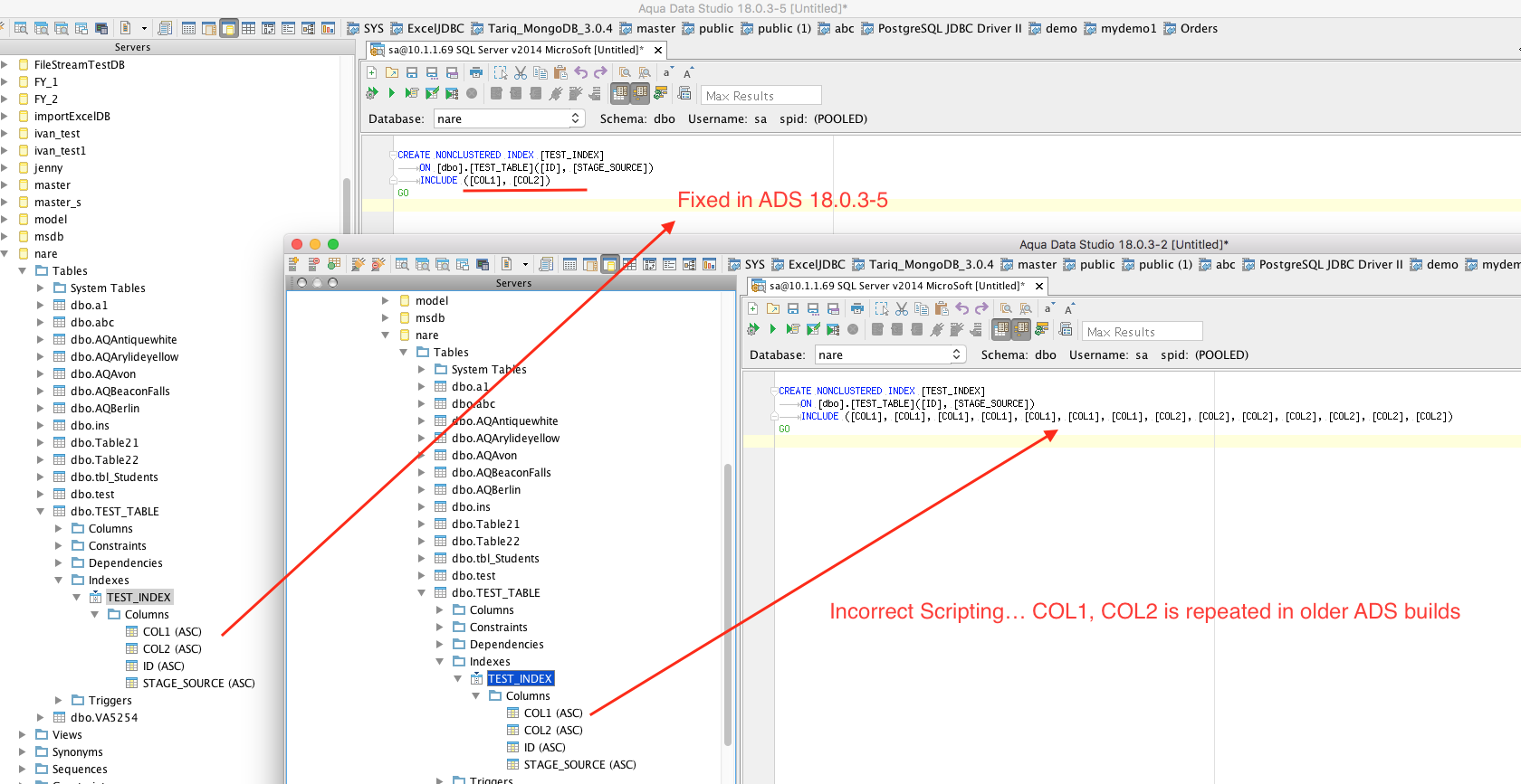 CREATE NONCLUSTERED INDEX [TEST_INDEX] ON [dbo].[TEST_TABLE]([ID], [STAGE_SOURCE]) INCLUDE ([COL1], [COL1], [COL1], [COL1], [COL1], [COL1], [COL1], [COL2], [COL2], [COL2], [COL2], [COL2], [COL2], [COL2]) GO