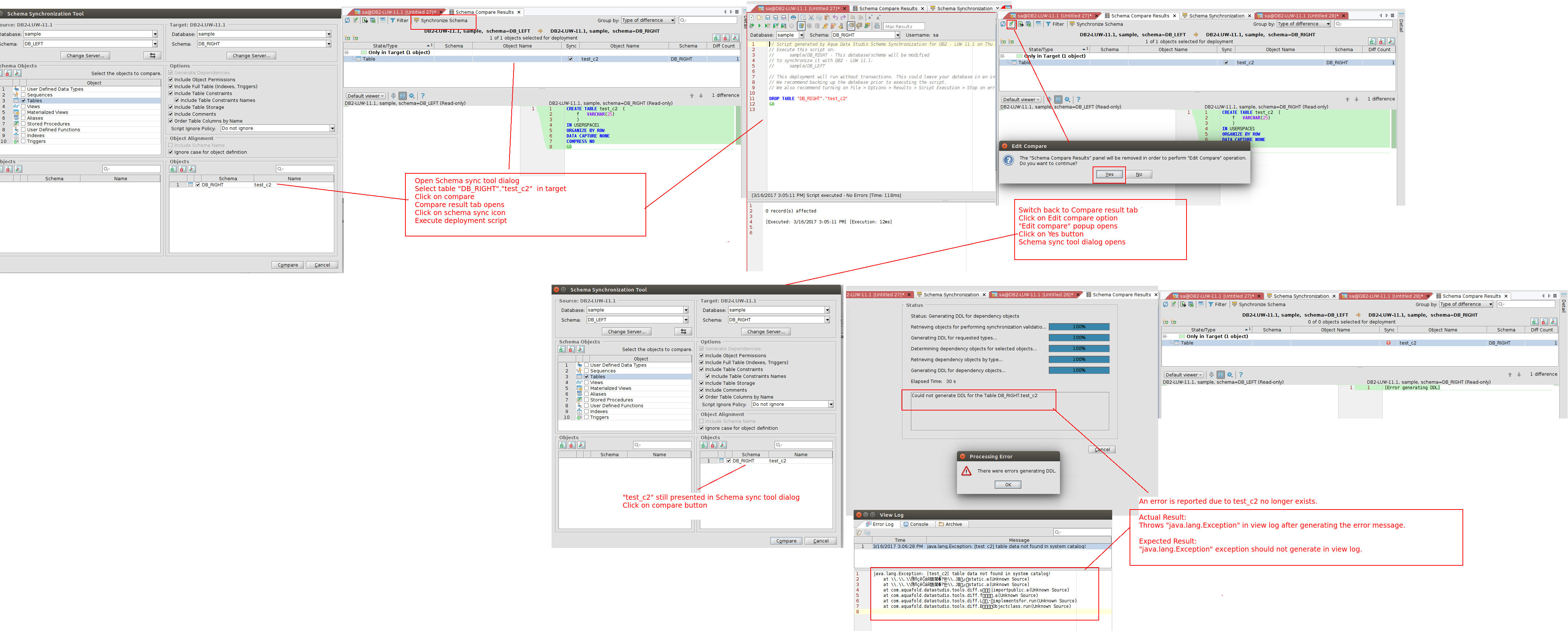 Edit Compare option is available in schema compare result tab for schema sync and Schema Compare