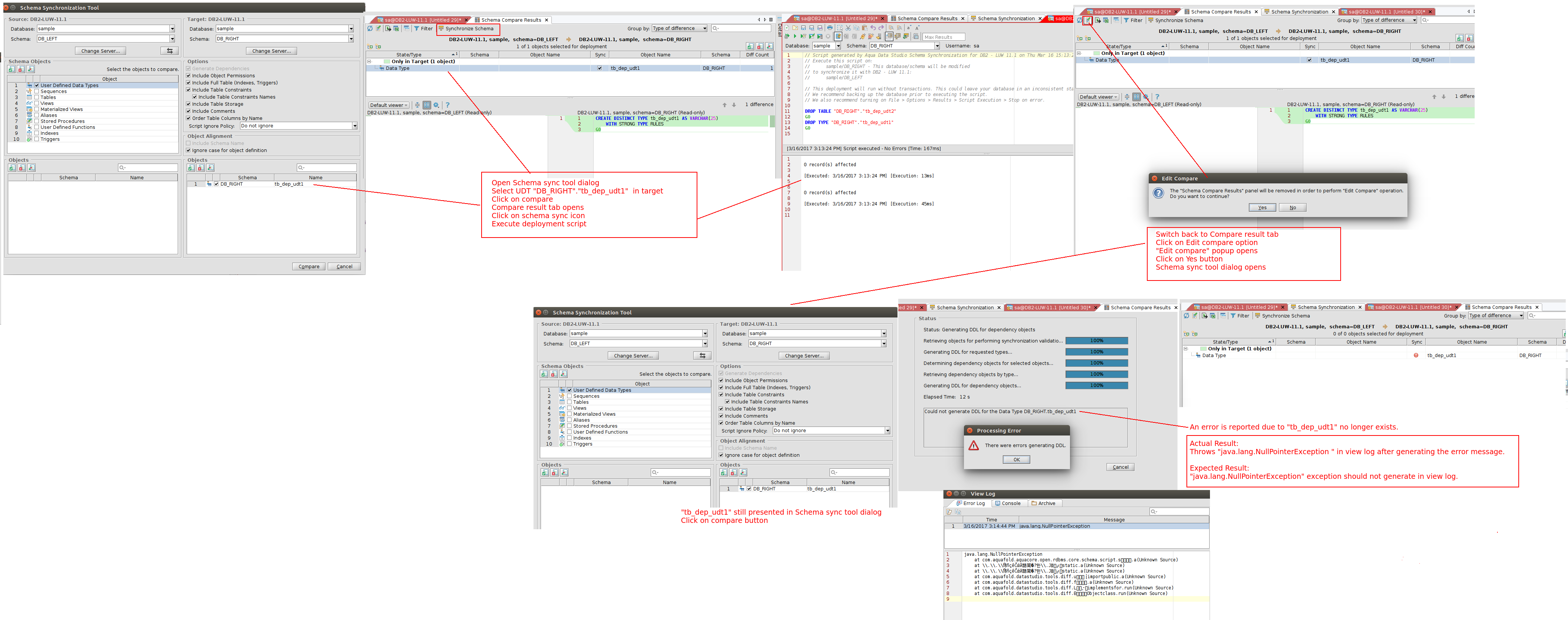 The NPE generated by this scenario has something to do with scripting. I have logged a separate issue, ADS #15080, to address this problem.