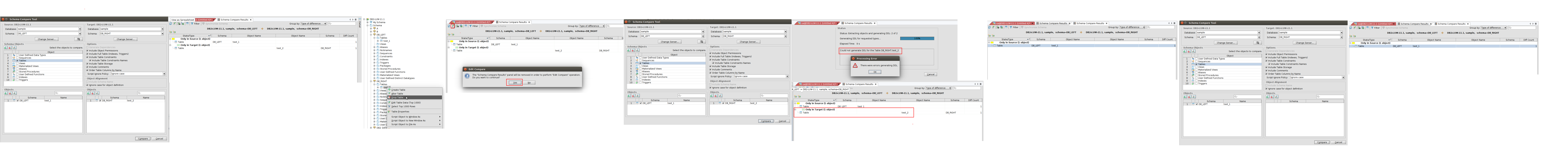 The "Schema Compare Results" panel will be removed in order to perform "Edit Compare" operation. Do you want to continue?