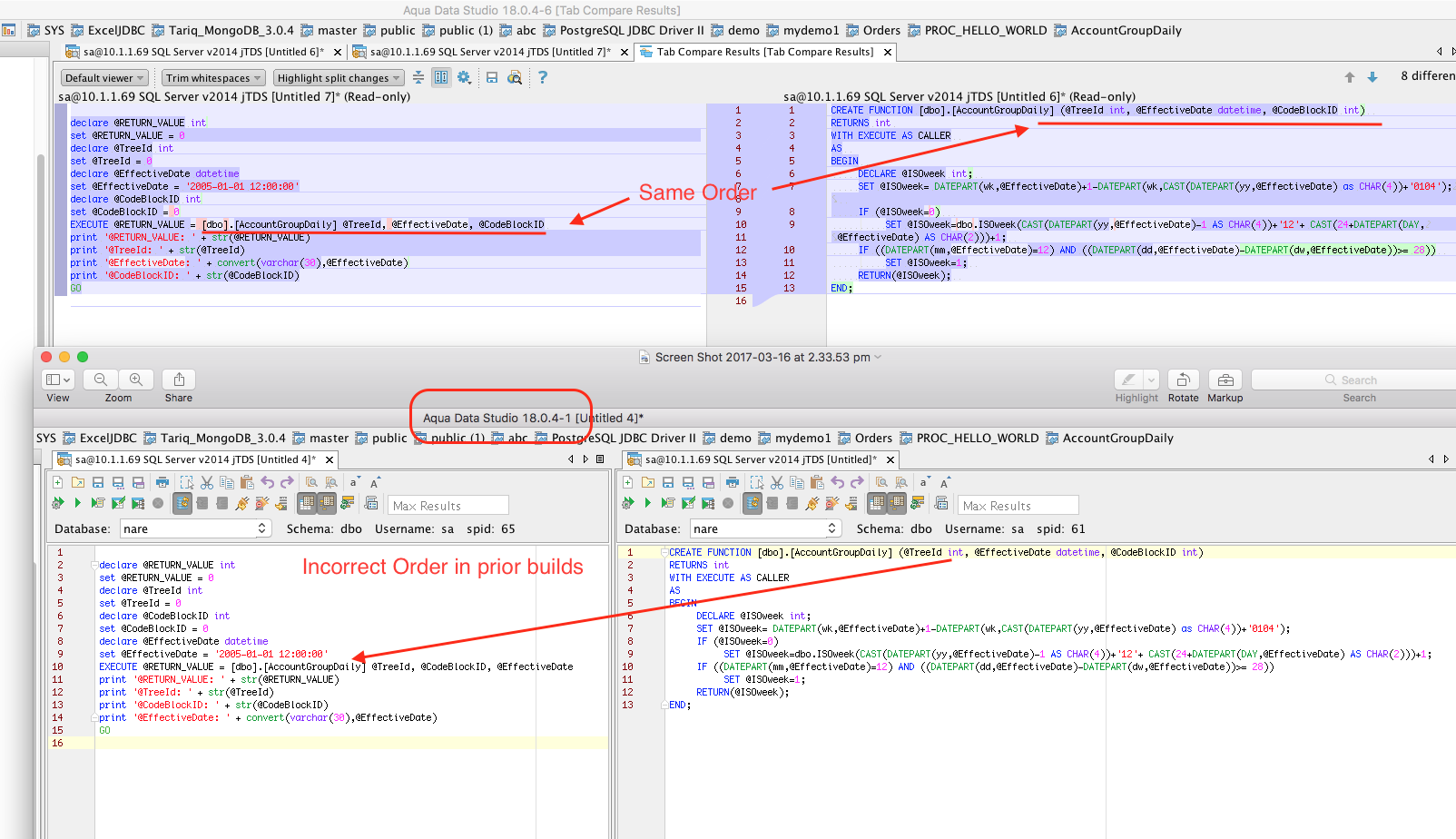 Verified in ADS v18.0.4-6. Both functions and procedures now respect the order in which they are created