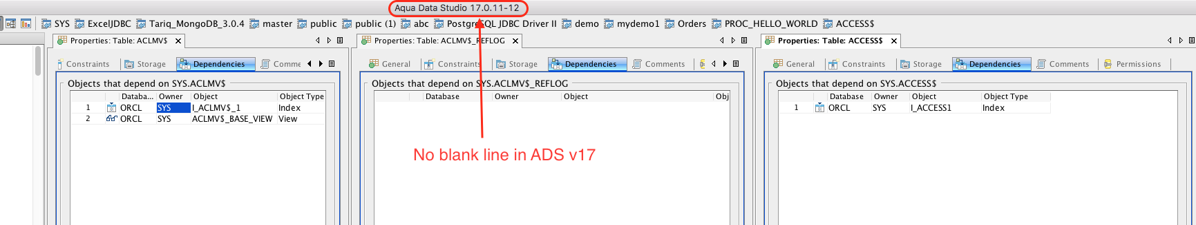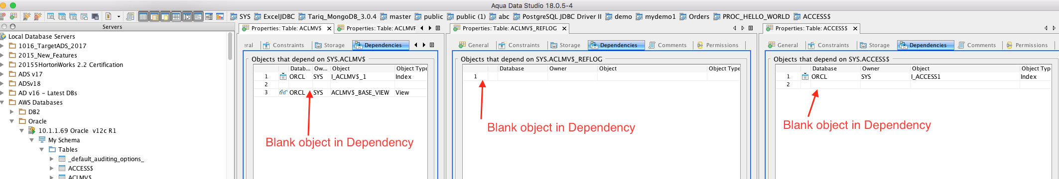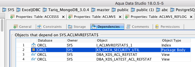 Oracle Table Properties -> Blank object is displayed in Dependencies
