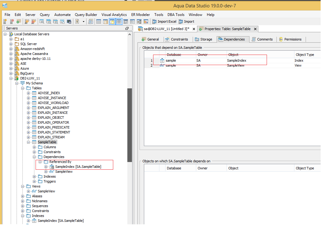 6.Now go to schema browser, expand tree node of created table, go up to Dependencies -> Referenced By folder, Observe Objects listed here.