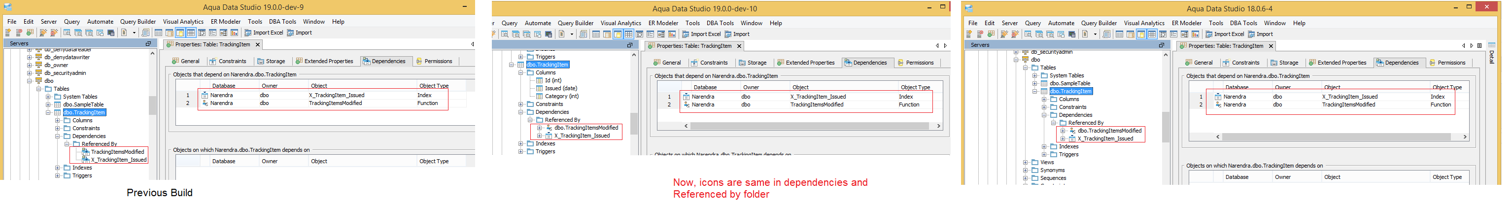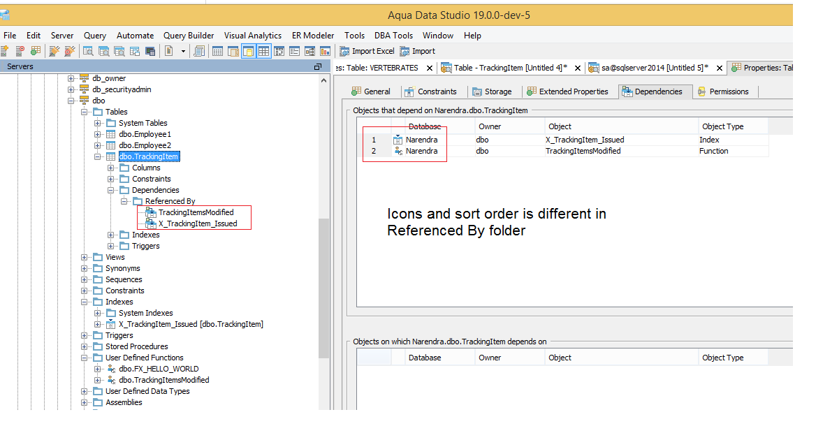 I have made enhancements to the sql server dependencies and referenced by schema tree nodes to better determine the object type. The dependencies model in the object properties gui is not going to always match the icon of the object in the tree node. The sort order is also not going to be done in the same way.