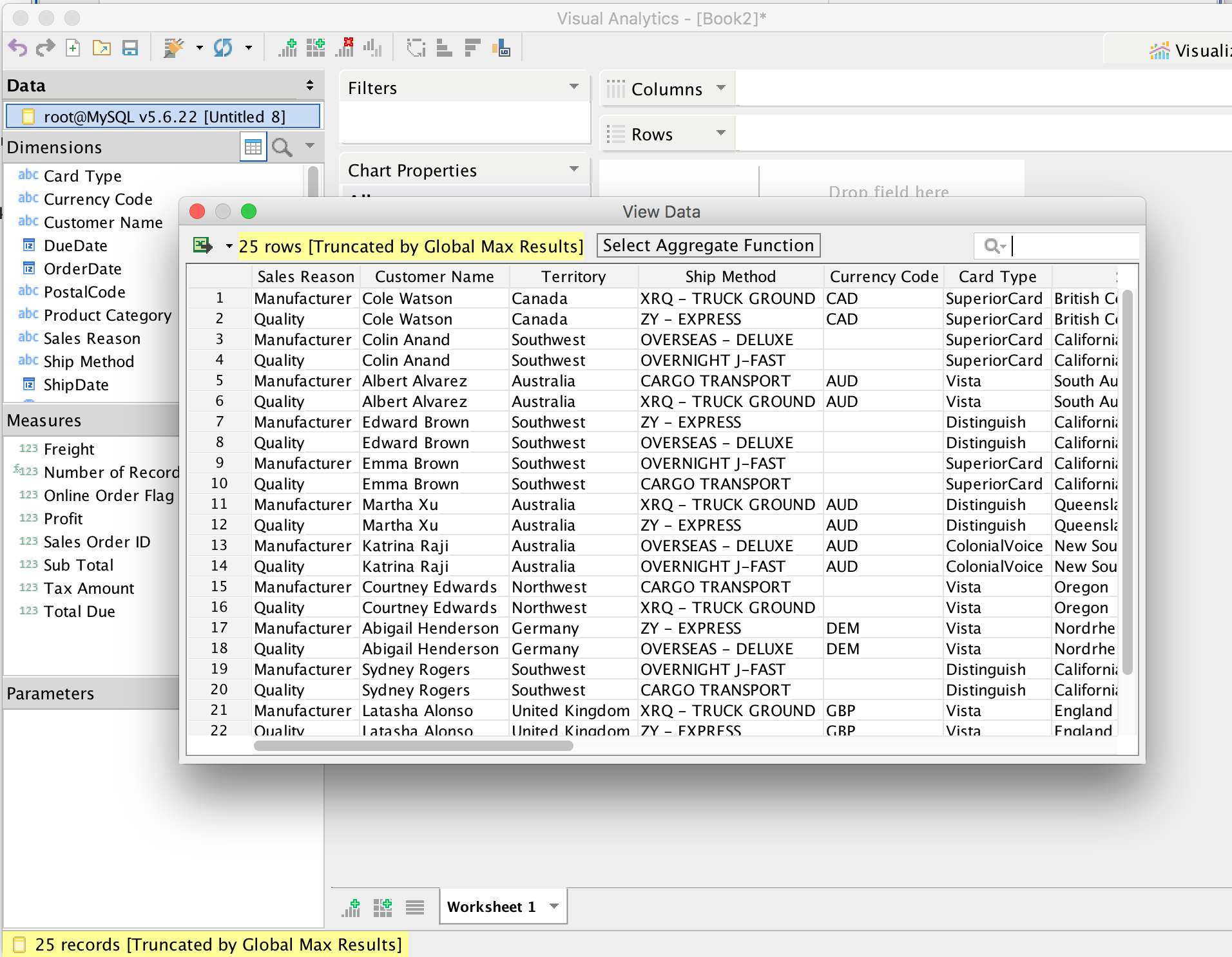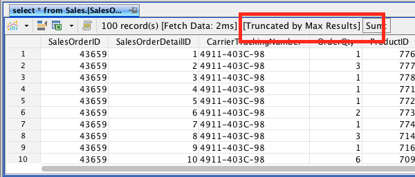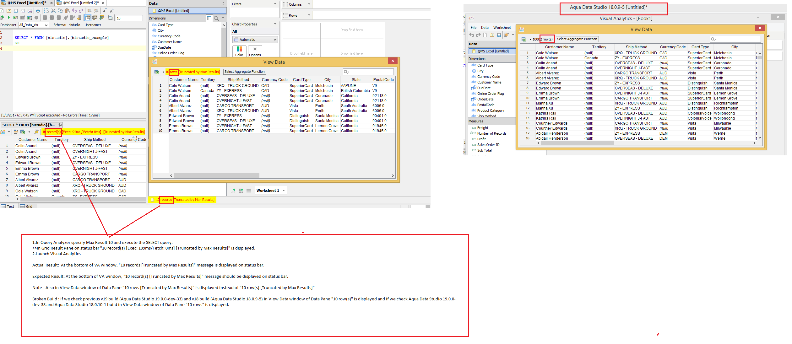- In Query Analyzer, specify a max results of 100 & then execute the query. Then launch VA. In VA, the status bar should show the truncated message. Also, if you click view data on the data pane, you should also see a truncated message.
