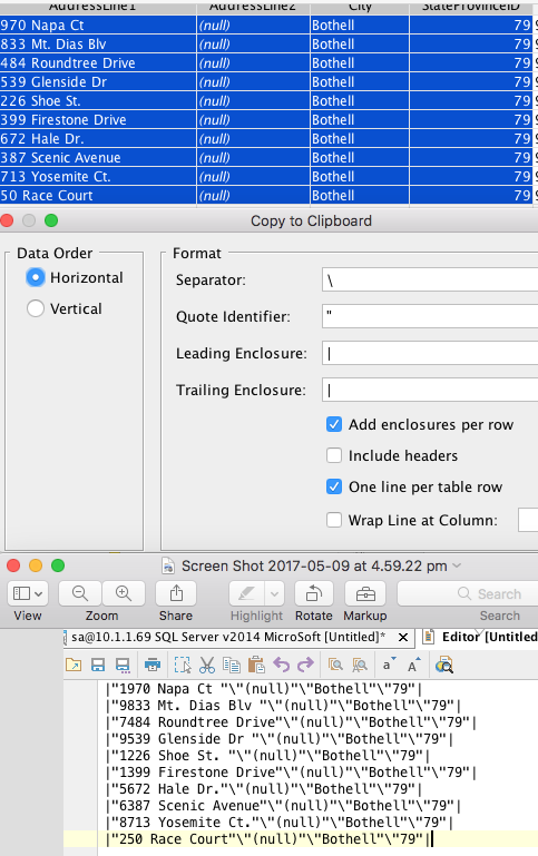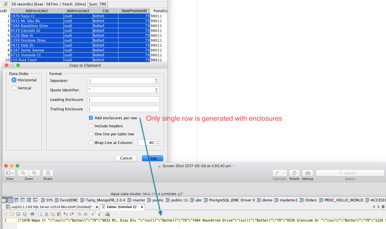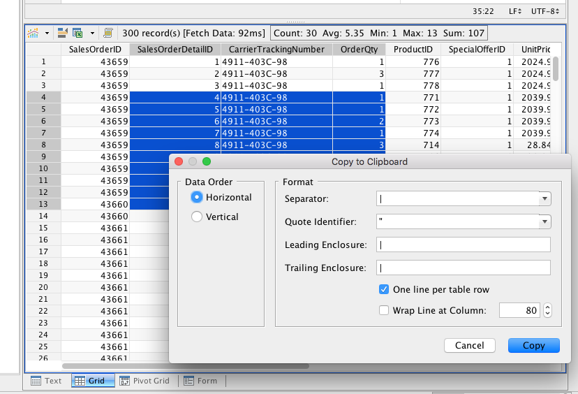 We want the "Copy As" dialog in the Grid Results to be able to generate the results of :