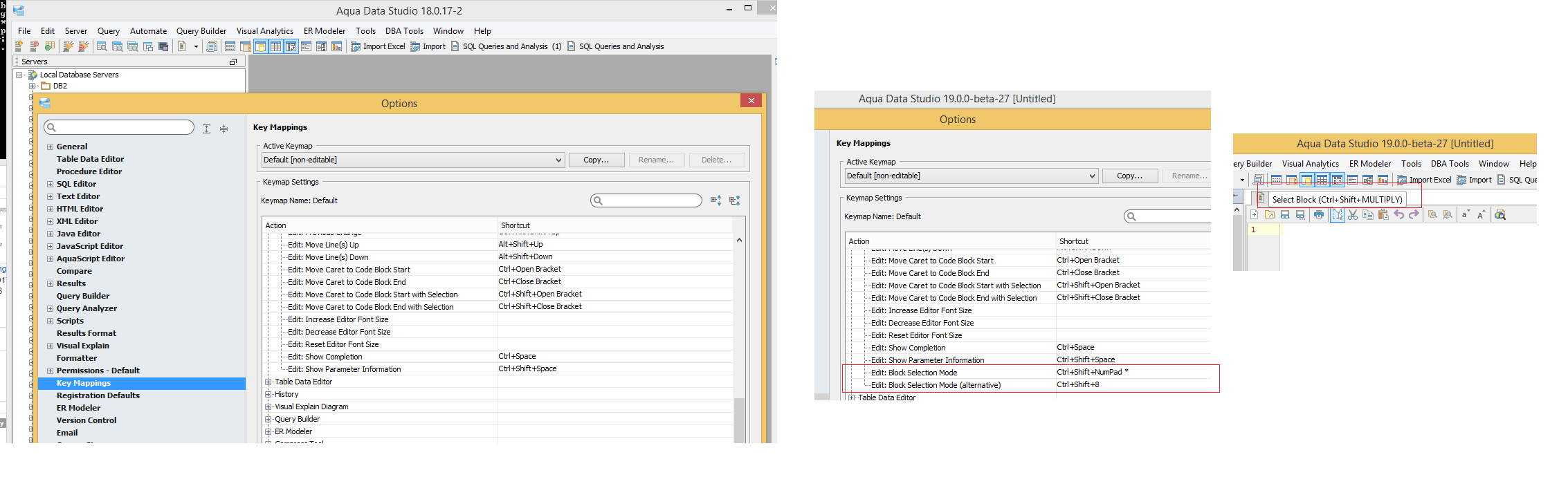 ---In Key Mappings, introduce a new key mapping entry for "Text Editor". Edit: Block Selection Mode. Default key mapping of Shift + Ctrl/Cmd + *