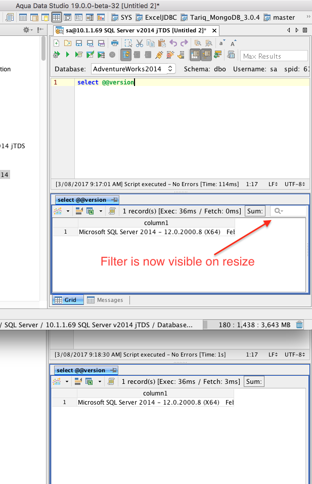 I have checked-in a change to v19 where, instead of absolute proportion, the info label is set to MINIMUM and text field is set to FILL, and the total size of the filter panel is reduced to 200 pixels.