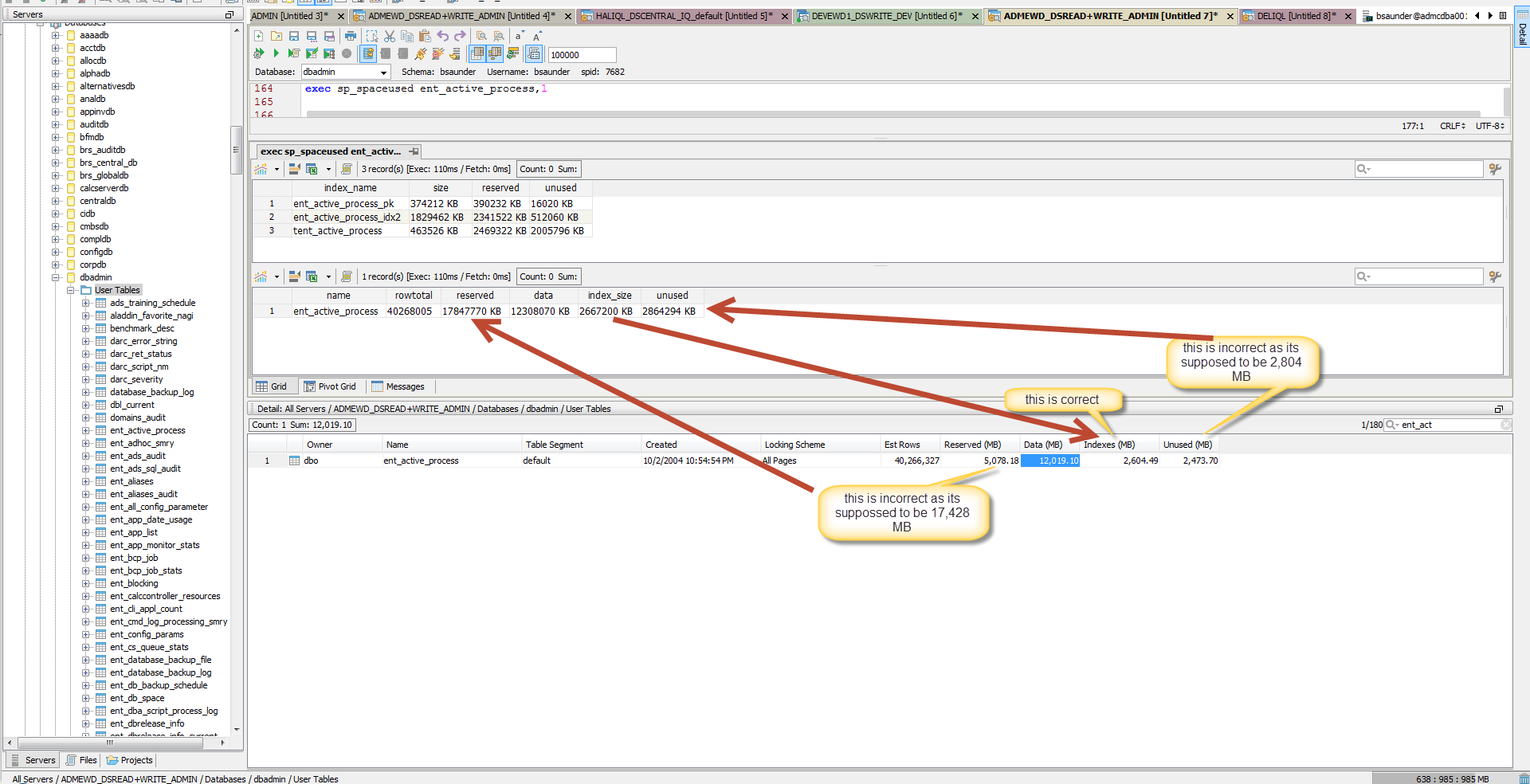 The space reported via the Detail tab is incorrect for reserved, and unused amounts. Index_size is correct - See attached, System is sybase ase 15.0