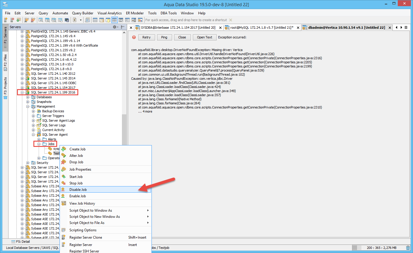I'm using Aqua Data Studio 18.0.18 and at the moment I'm transferring Sql Server jobs between servers.