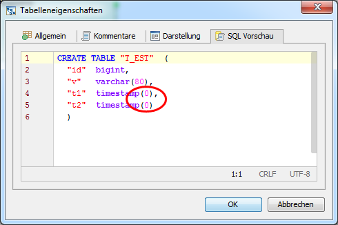 Per default timestamp types will be created as timestamp(0) which is not usable for our Informatica environment.