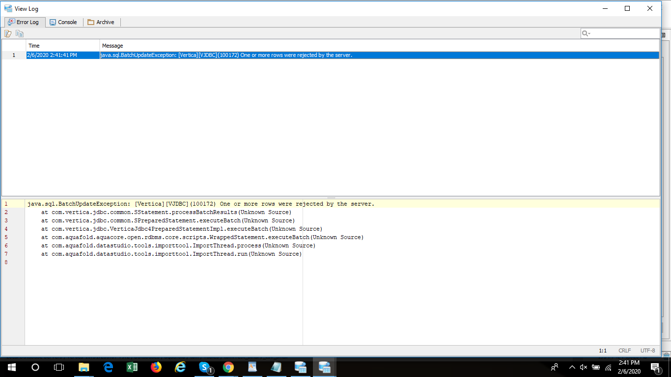 This error dialog and message already exist in ADS, and the condition is already handled. This handling needs to be validated due to the nature of BLOB values being large and such condition is more like to occur when importing BLOB values.