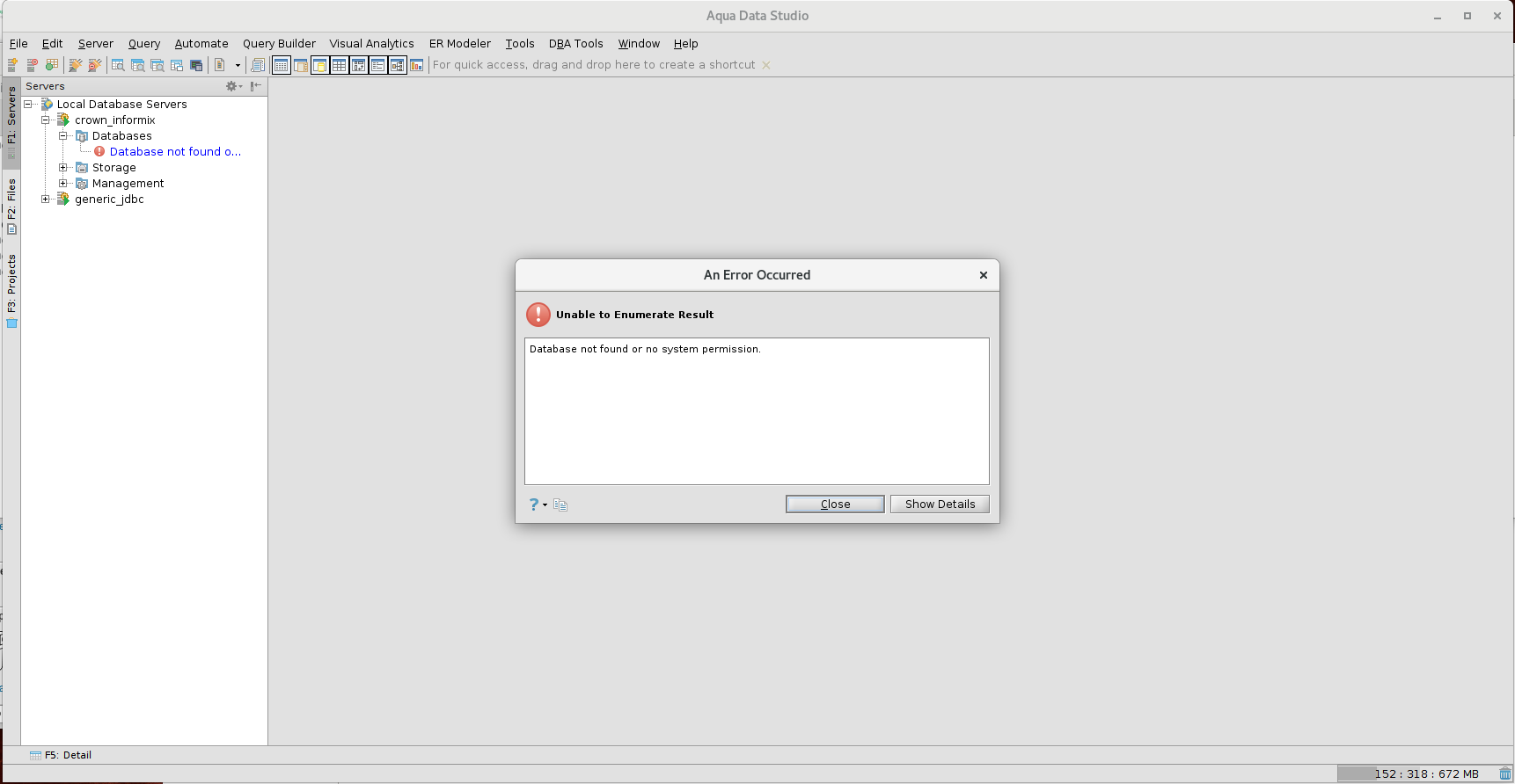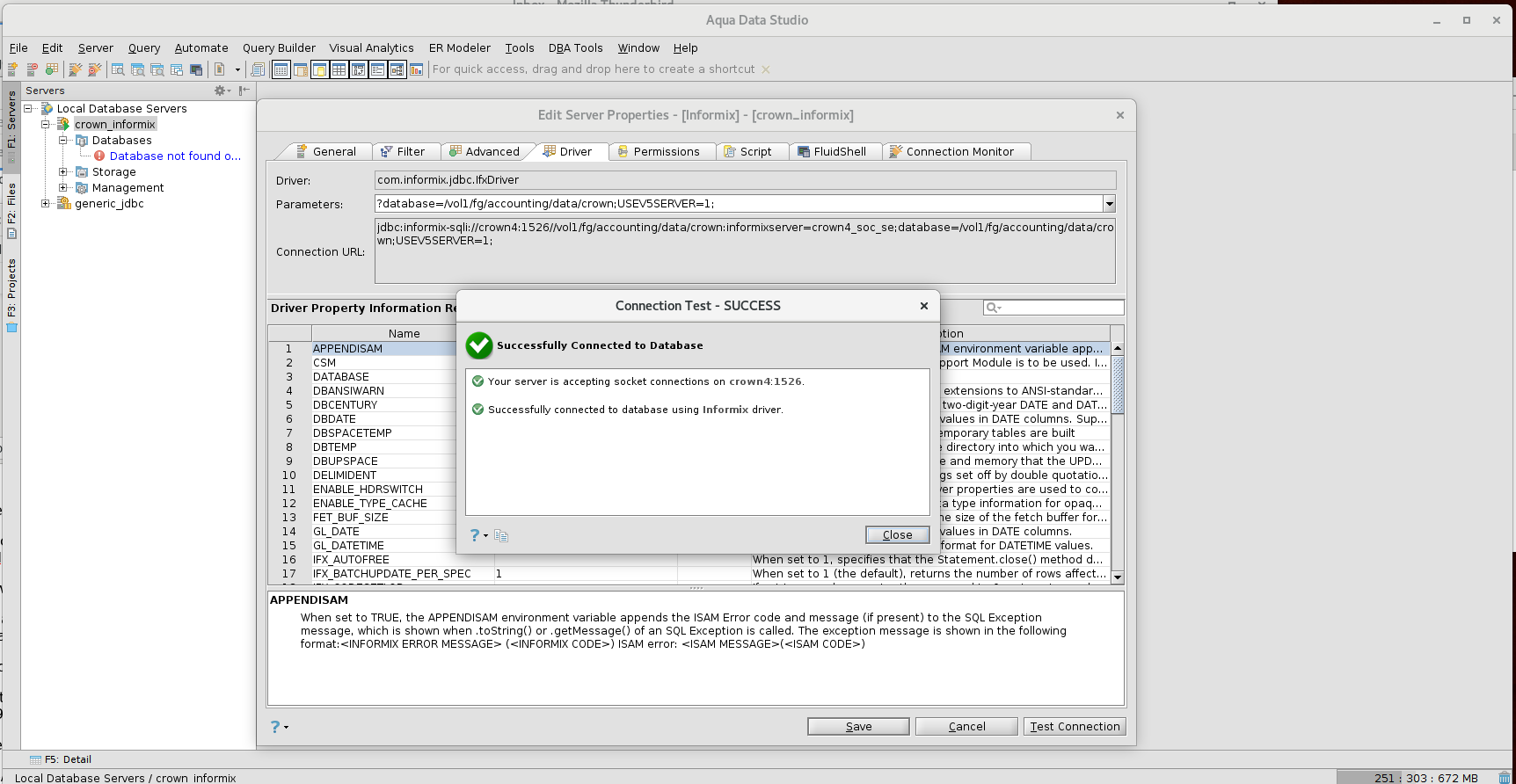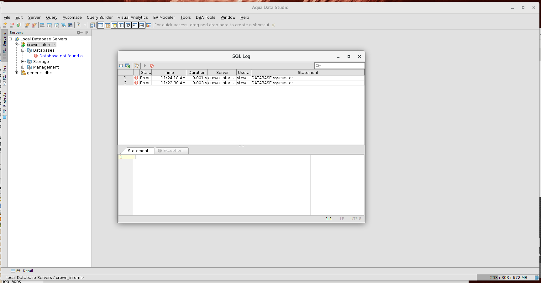 connection. Aqua Data is using sysmaster for the database. I'm running