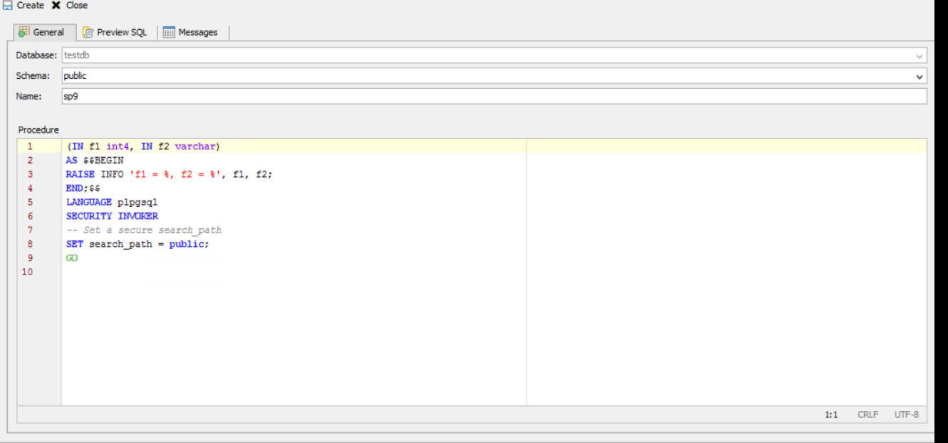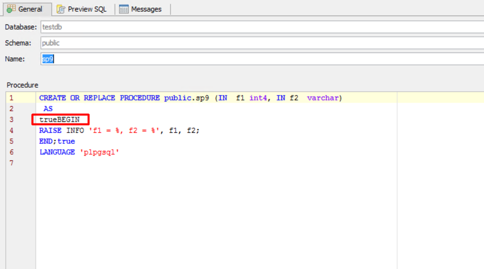 Expected result: It should show the right query which we used to create the procedure.