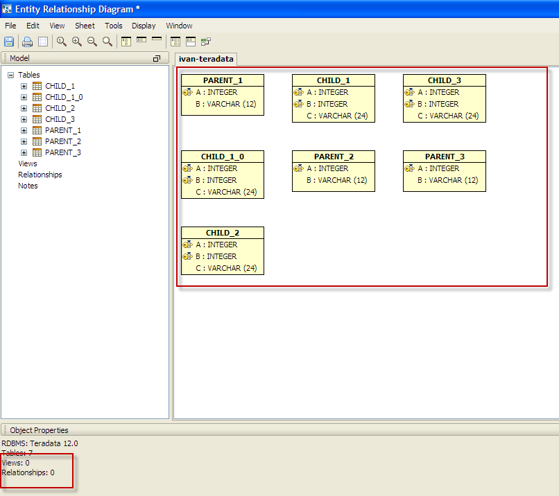These tables are created with relationship each - but when the diagram is generated, there are no relationships