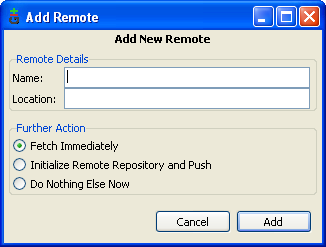 The remote details are name and location. See screenshot of Tortoise and GIT GUI