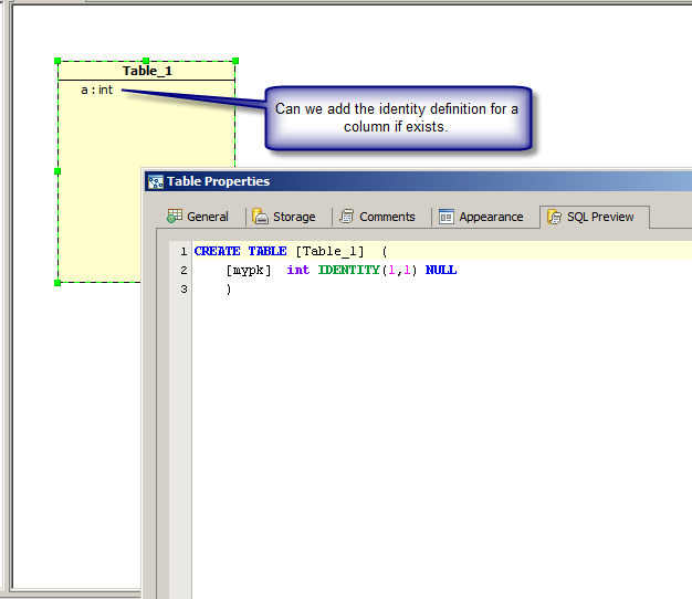 2. Should identity be displayed when physical schema option is off? Currently, only the name is shown.