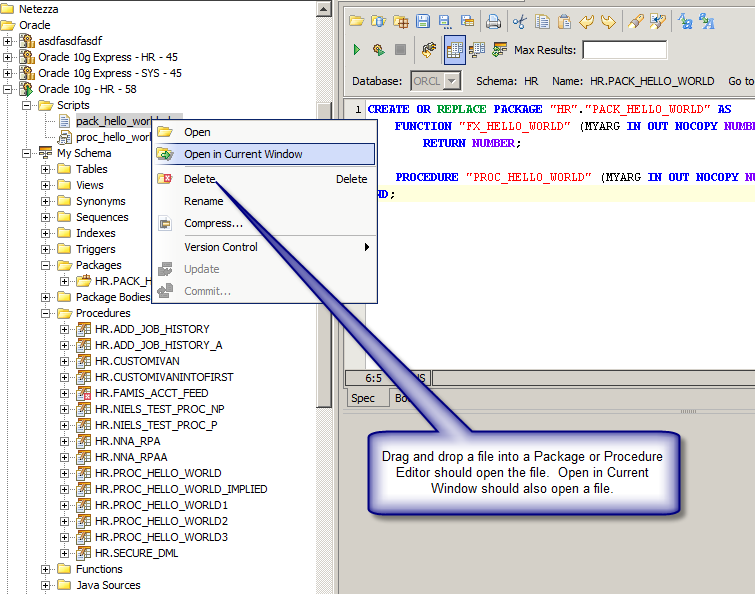 open in current + drag and drop works in the procedure and the package editors.