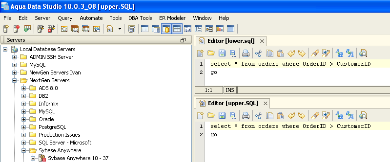 Open the attached files upper.SQL and lower.sql and see the difference