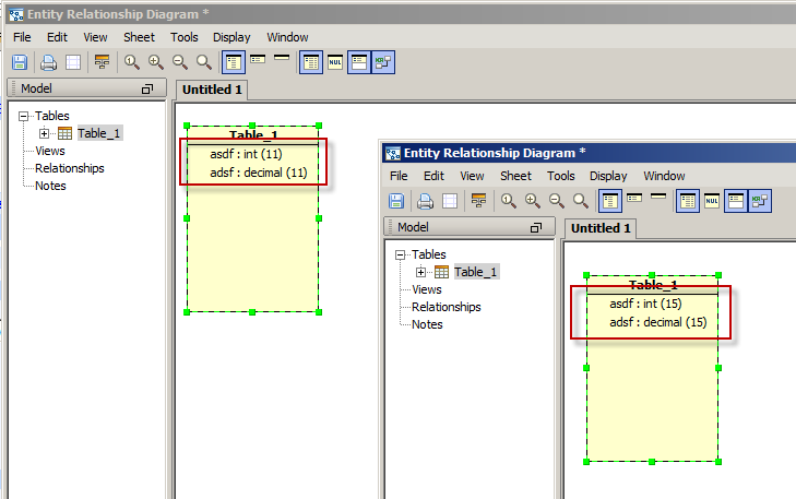 8. Switch back to the 1st TAB and all of the NUMERIC column lengths are 15 {or 15,5 for DECIMAL}.