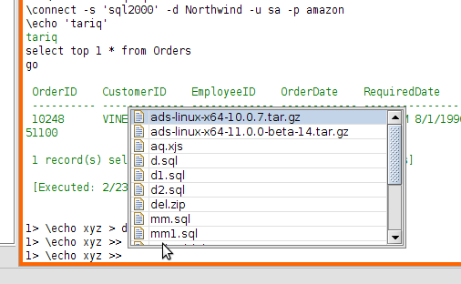 Completion after redirect char ( <, >, >> ) works on many commands, but not for \echo: