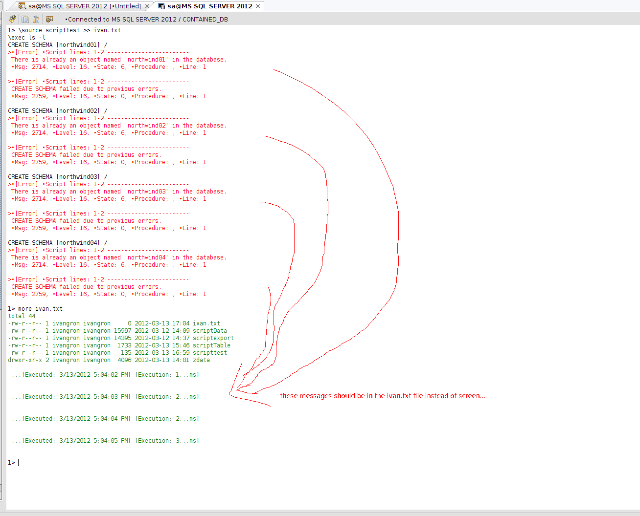 This was the scenario which we had discussed in the morning, instead of viewing the output of the \source in the screen, user can pipe the output to file.