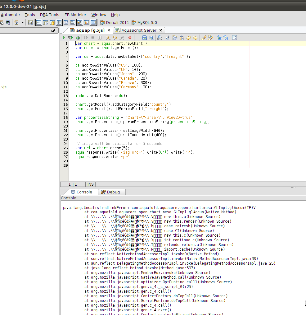 1. Execute below aquascript and you get an exception in 12.0. I dont get any error in 11.0