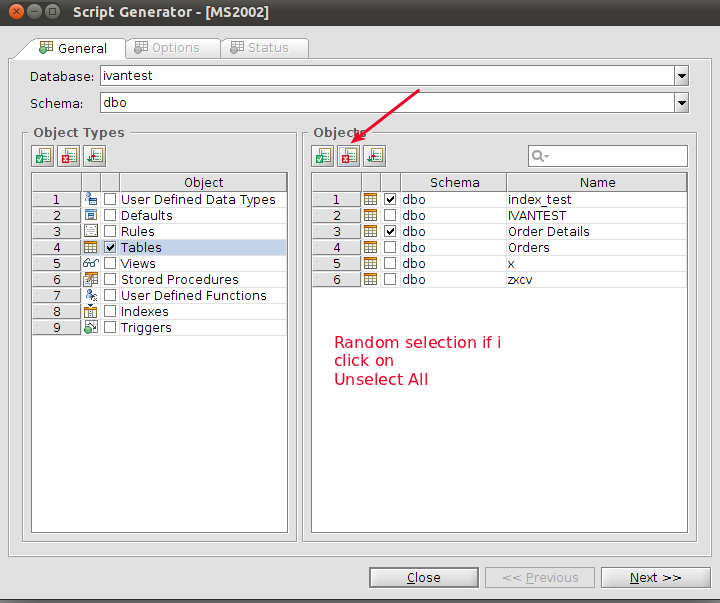 Choose to "Uncheck Selected", it doesn't uncheck ALL selected, but some objects in random