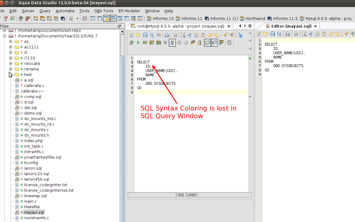 6. Now go back to the contents of the file A - SQL Syntax Coloring is lost