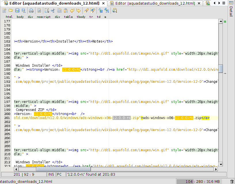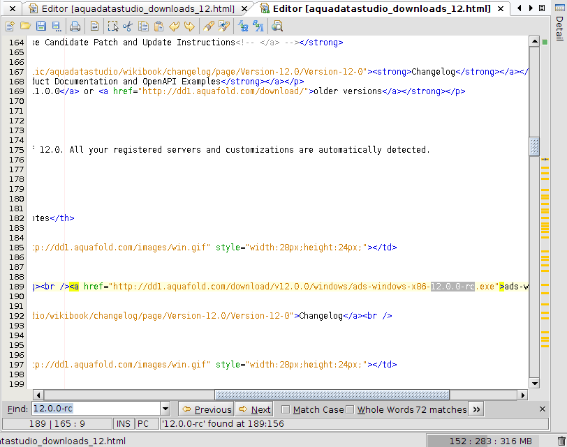 HTML editor doesn't provide the find bar indicator like Text and XML on the right hand side. Works for ADS 11.0.