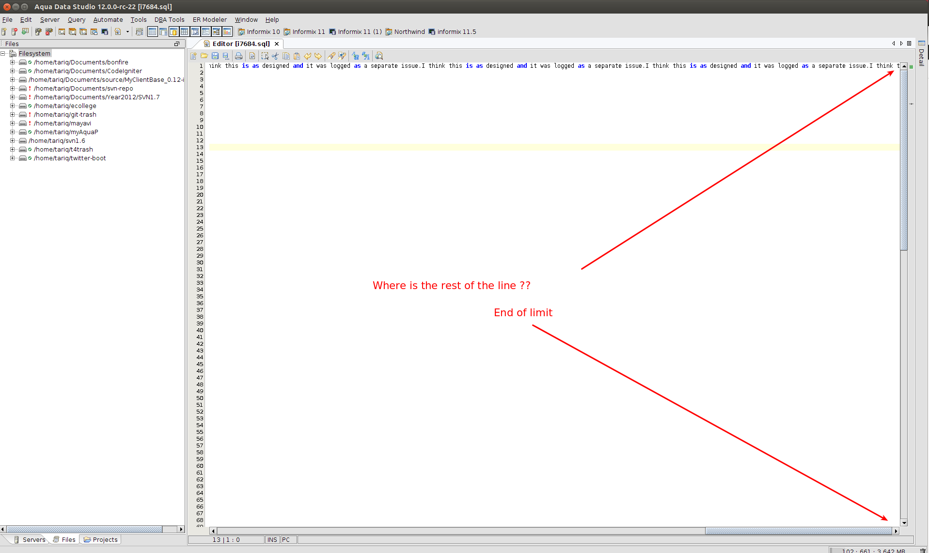 9. Move the Vertical scrollbar towards the end - It only extends till the 735 character limit of line 145 and does not extend to the limit of line 1 which is incorrect