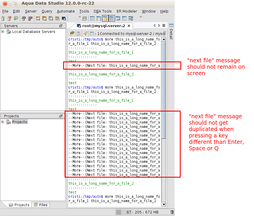 (2) >> Additionally, in the above situation when the "--More--(Next file: x)" message is displayed, if a key different than Enter, Space or Q is pressed, the message gets displayed multiple times.