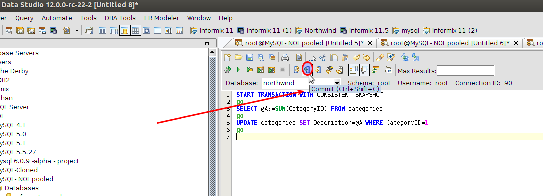 1. Open a query analyzer window connected to a MySQL Server.