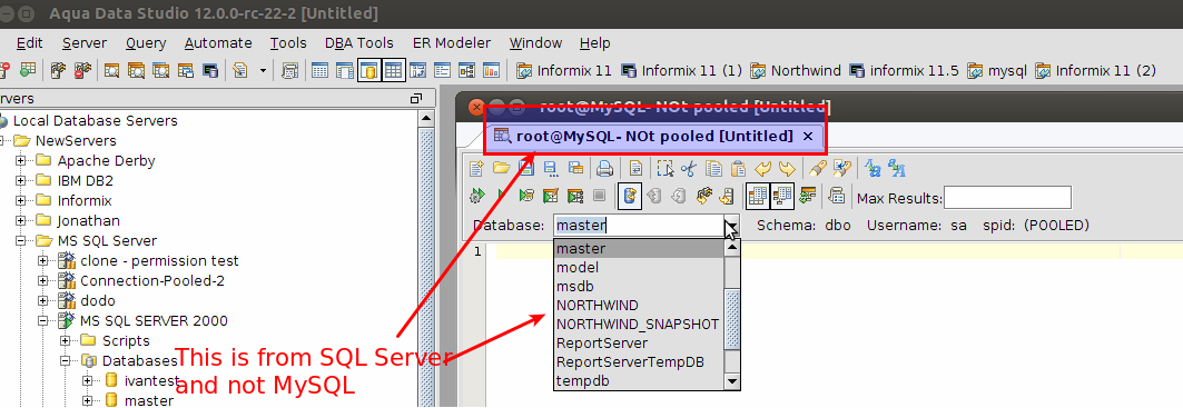 Notice the the name of the MySQL connection is retained which is incorrect.