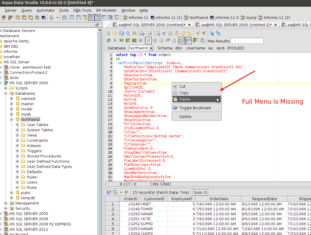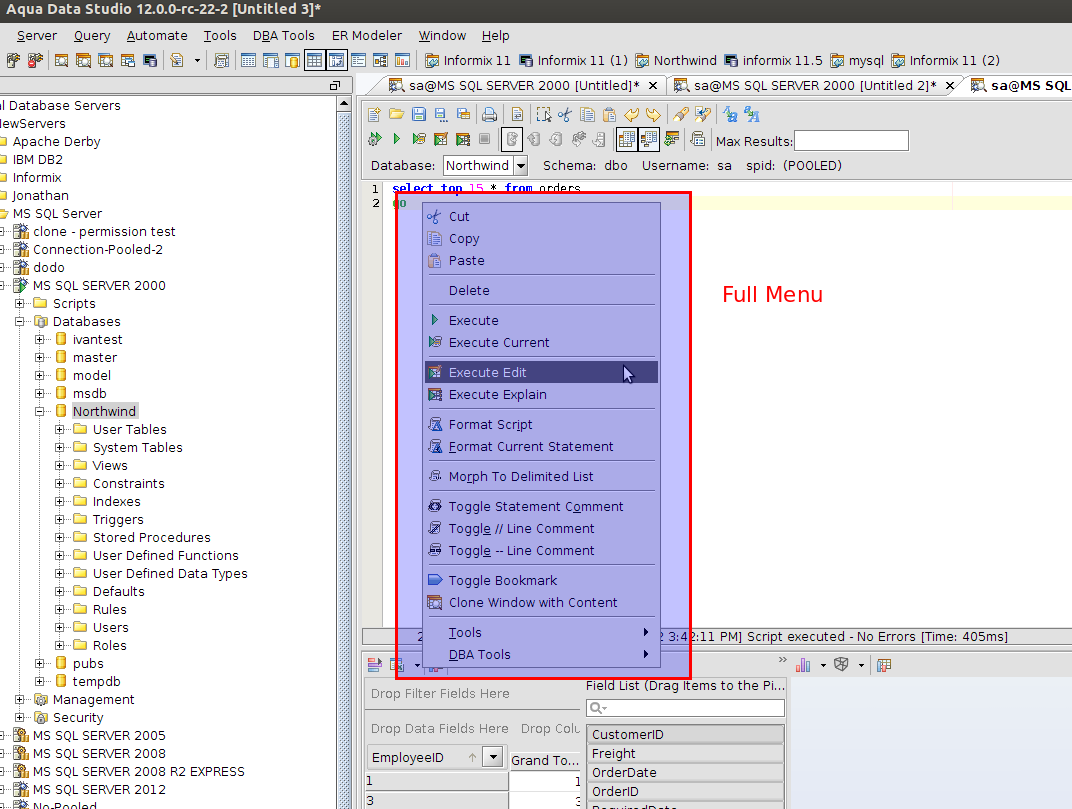 Full menu is missing from Query Window --> when you perform a Script Full to New Window from Pivot Grid Tab
