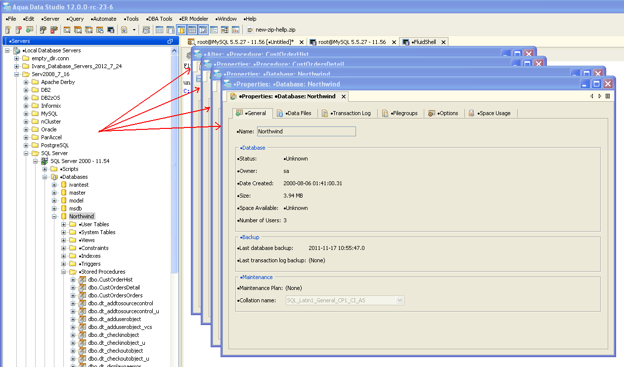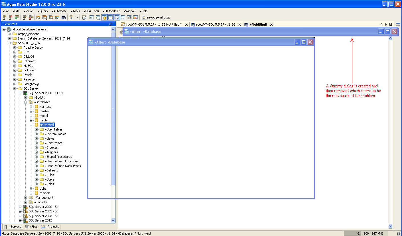 2. In the Servers Node, navigate to a DB server and try to take any database object property